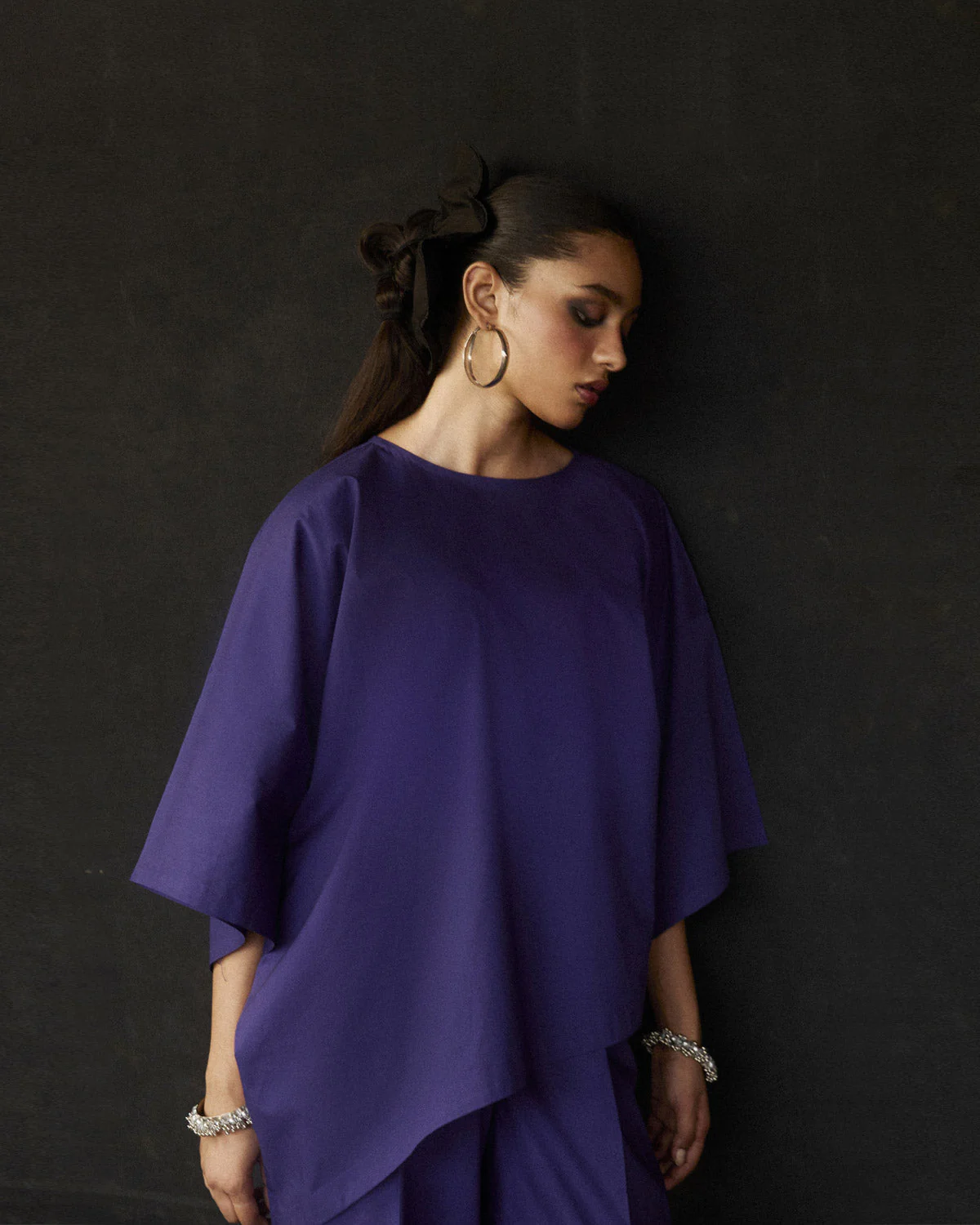 Description: Exude modern elegance with this sophisticated aubergine coord set. Crafted from soft, breathable cotton, the ensemble features an asymmetrical shirt that adds a contemporary edge to your look. The shirt’s unique cut is complemented by flared pants, which provide a graceful, flowing silhouette. A bowtie back closure enhances the outfit with a touch of charm and refinement, making it a versatile choice for both formal and casual occasions. The rich aubergine hue brings a deep, luxurious feel to the set, ensuring you stand out with effortless style..